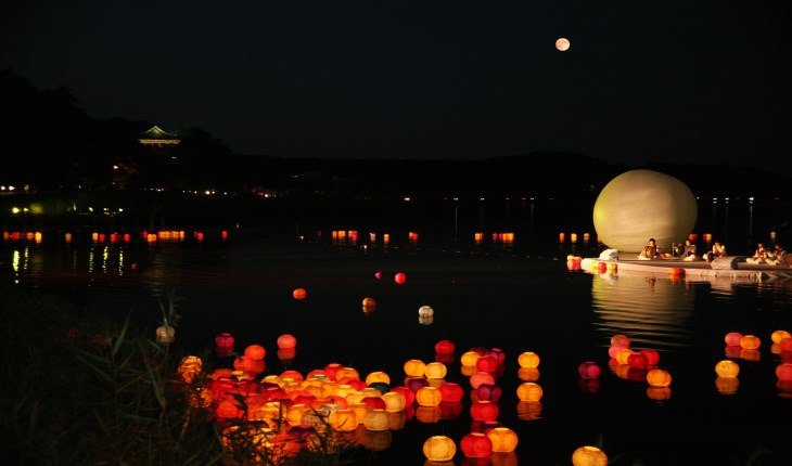 "호수 위로 비치는 등불들이 너무 예쁘네요."
