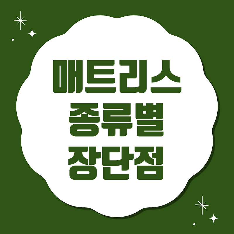 각 매트리스 종류별로 장점과 단점을 살펴보면 다음과 같아요.
