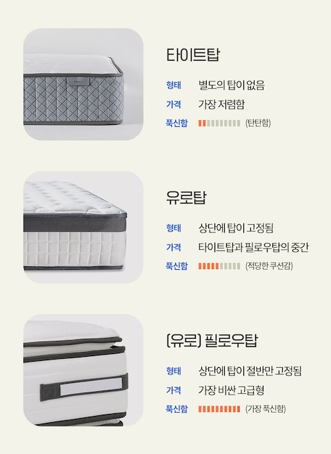 [3] Naver Blog - 매트리스 유형별 장단점 정리 : 이너스프링, 라텍스, 메모리 폼 (https://blog.naver.com/techref/222568807275?viewType=pc)