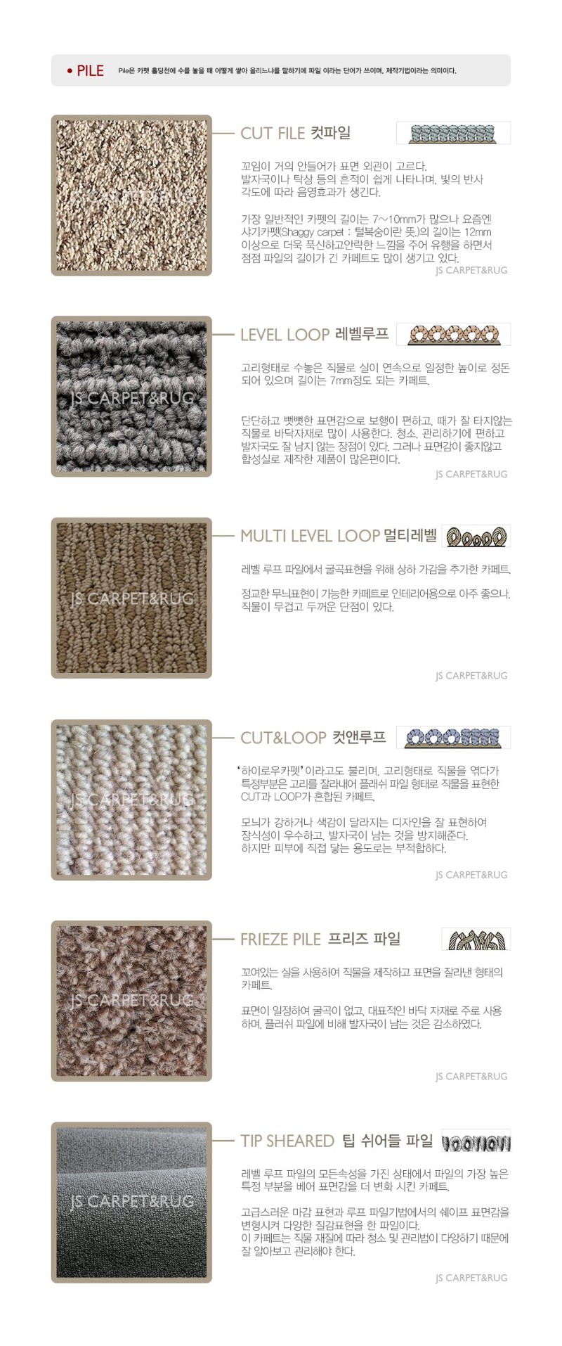 - 프리제 파일 (Frieze Pile): 꼬인 섬유로 만들어져서 부드럽고 아늑한 느낌을 줘요.