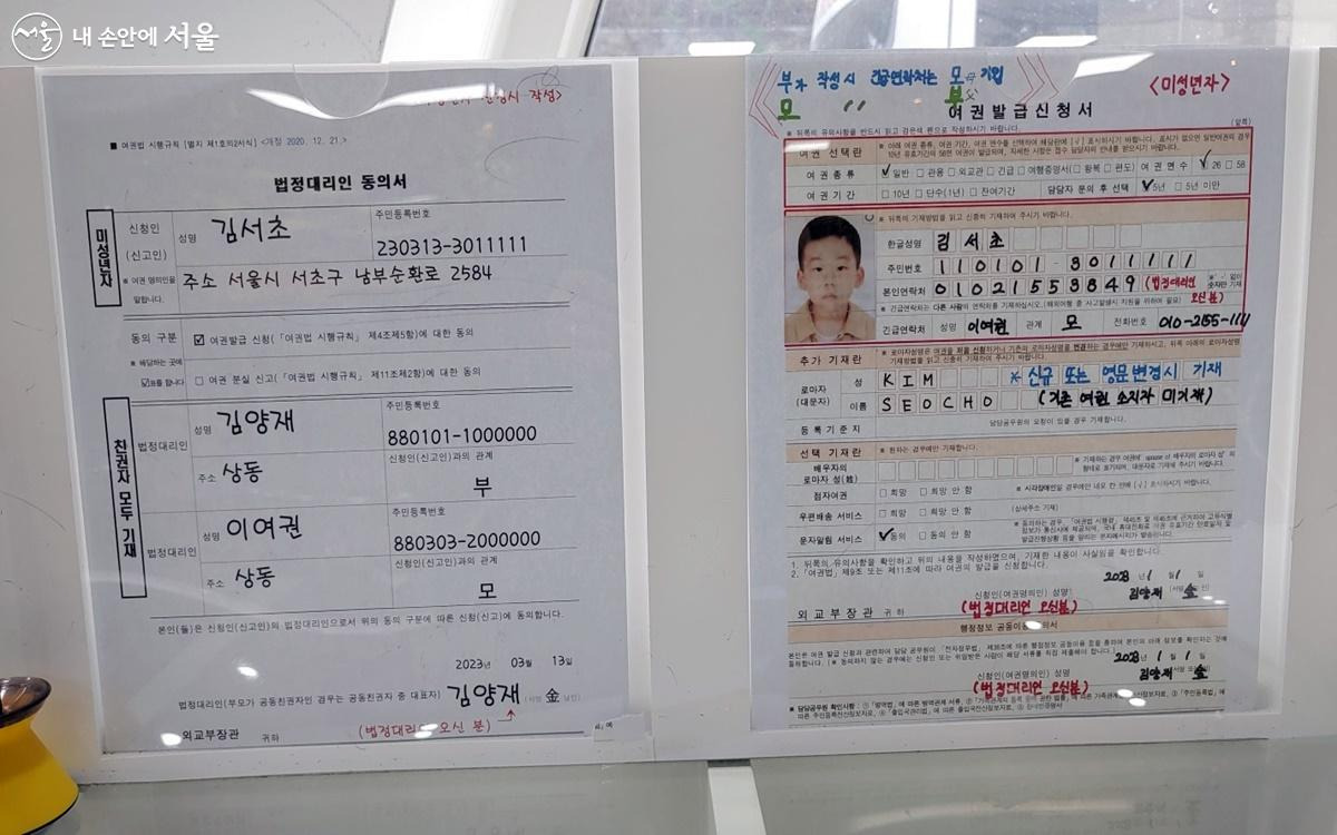 미성년자의 여권 발급을 위해서는 법정대리인, 즉 부모 또는 법적 후견인의 서명이 필요합니다. 이 동의서는 아이가 해외로 나가는 것에 대한 동의이며, 법적으로 중요한 서류로 취급됩니다. 동의서 작성 시, 부모님의 인감증명서나 본인서명사실확인서가 필요할 수 있습니다. 미성년자의 안전과 권리를 보호하기 위한 조치이니, 이 점을 꼭 기억해 주시기 바랍니다. 여권 신청서 작성 예시는 아래와 같습니다.