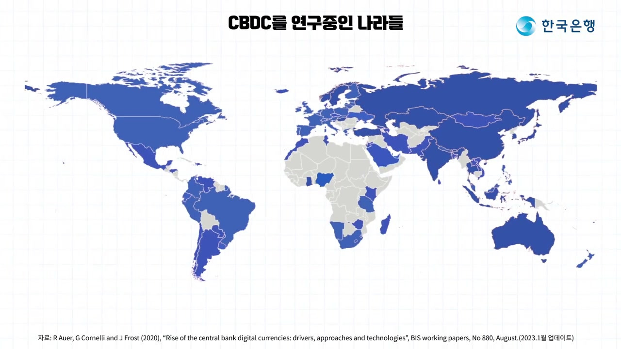 - 현재 전 세계 대부분의 중앙은행이 CBDC를 연구하고 있다 .